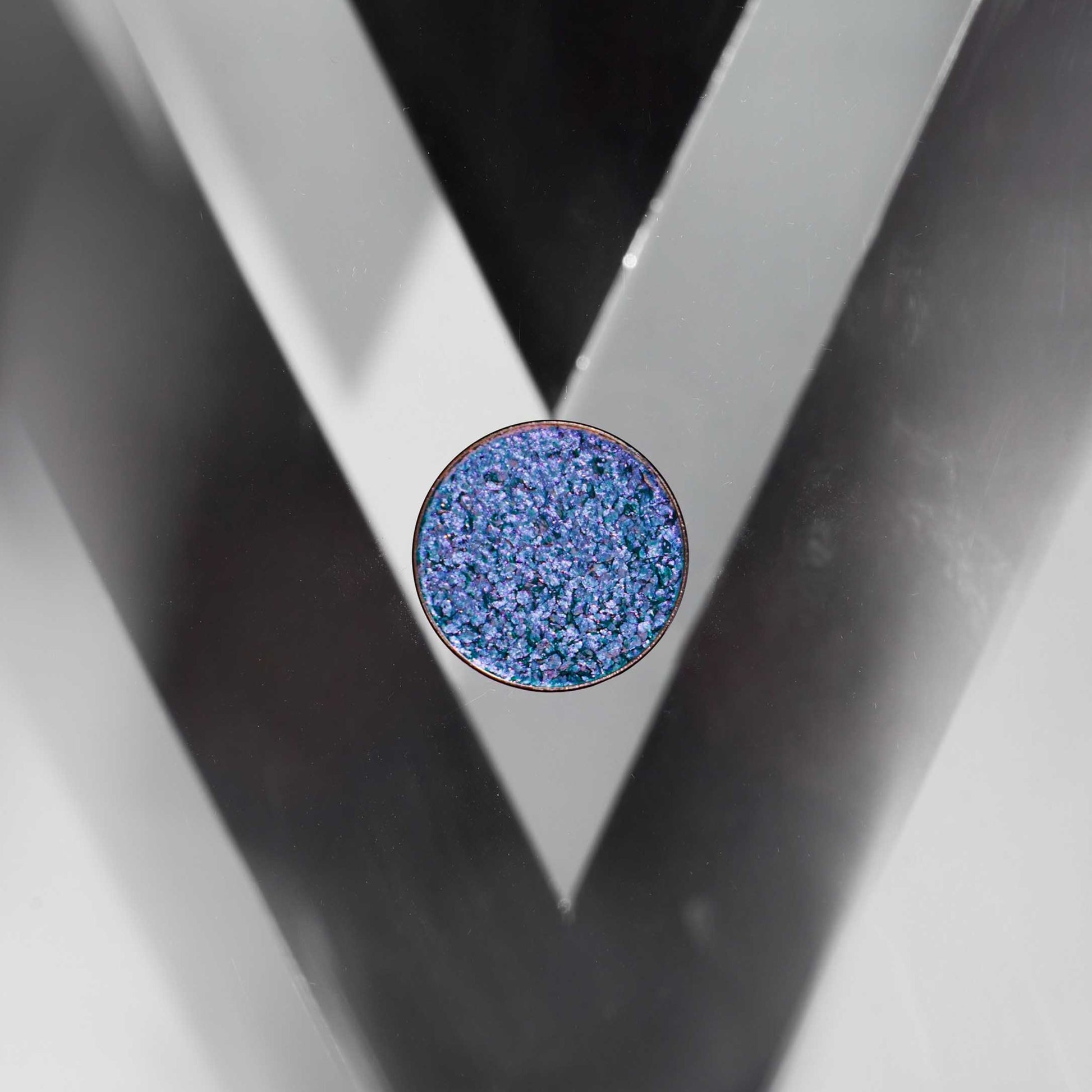 Multichrome oogschaduw met een intense shift tussen blauw, violet en turquoise.